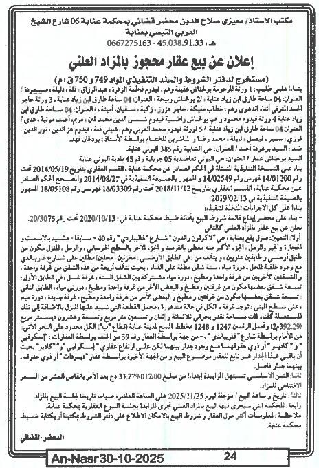Il sera procédé à la vente au plus offrant et dernier enchérisseur le :