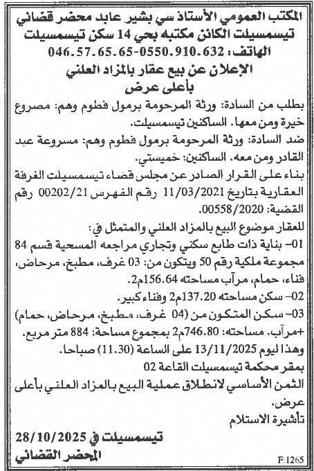Il sera procédé à la vente au plus offrant et dernier enchérisseur le :