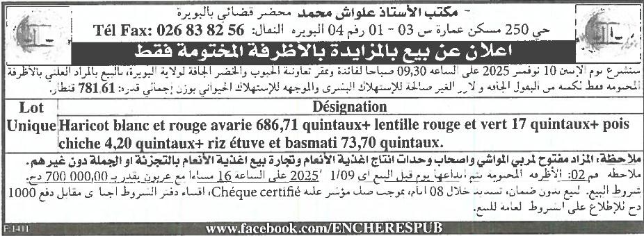 Il sera procédé à la vente au plus offrant et dernier enchérisseur le :