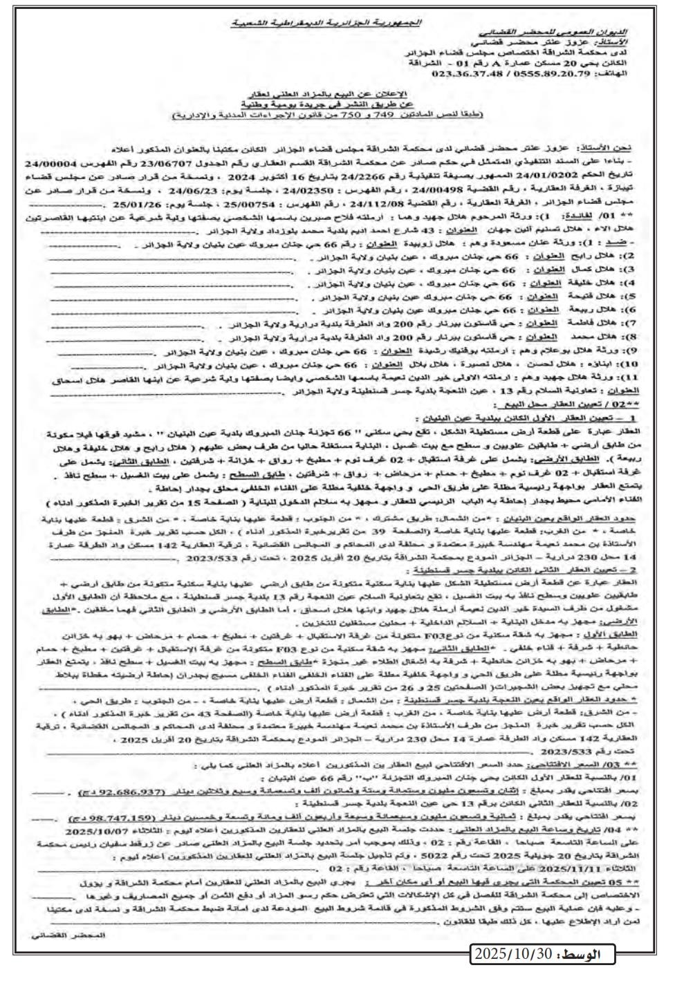 Il sera procédé à la vente au plus offrant et dernier enchérisseur le :