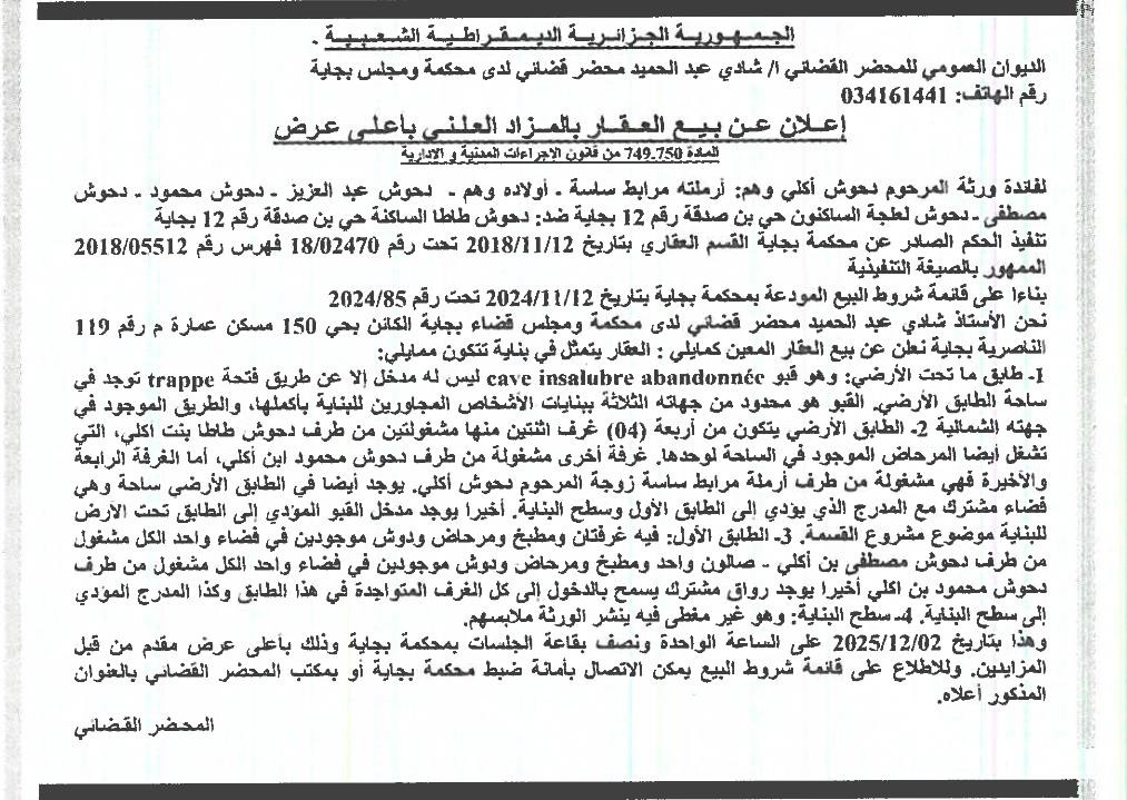 Il sera procédé à la vente au plus offrant et dernier enchérisseur le :