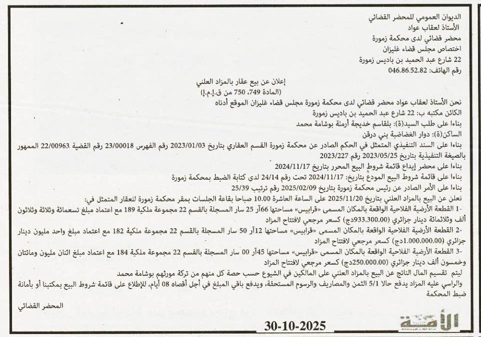 Il sera procédé à la vente au plus offrant et dernier enchérisseur le :
