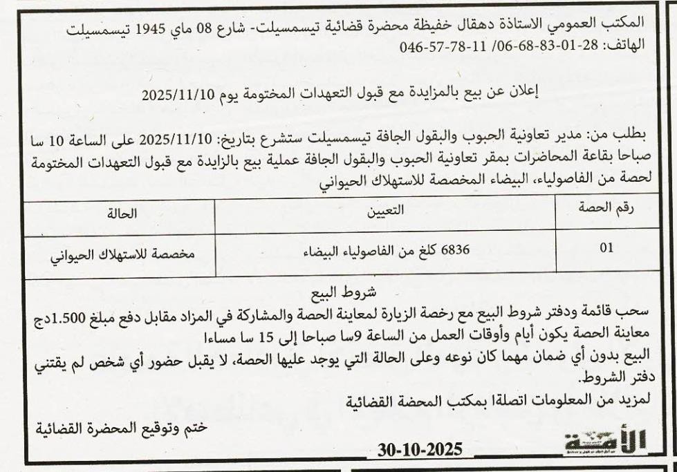 Il sera procédé à la vente au plus offrant et dernier enchérisseur le :