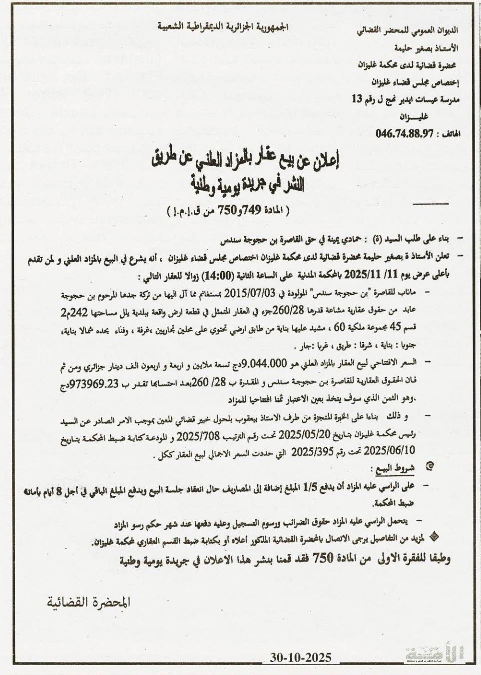 Il sera procédé à la vente au plus offrant et dernier enchérisseur le :
