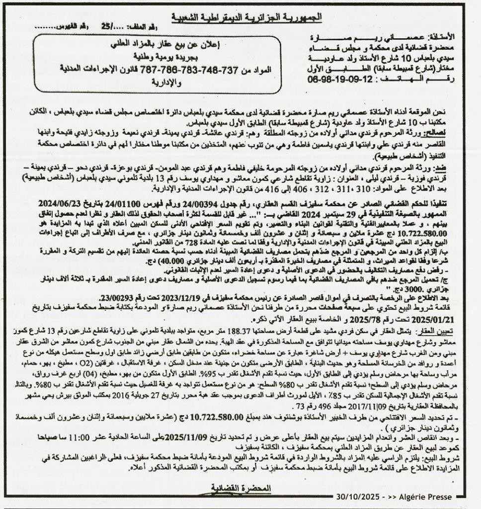 Il sera procédé à la vente au plus offrant et dernier enchérisseur le :