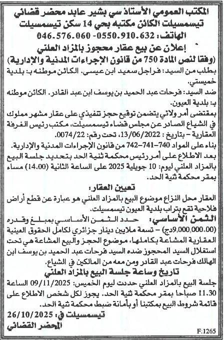 Il sera procédé à la vente au plus offrant et dernier enchérisseur le :