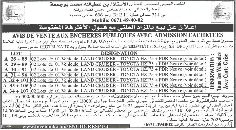 | Objet: VENTE DES VEHICULES | |