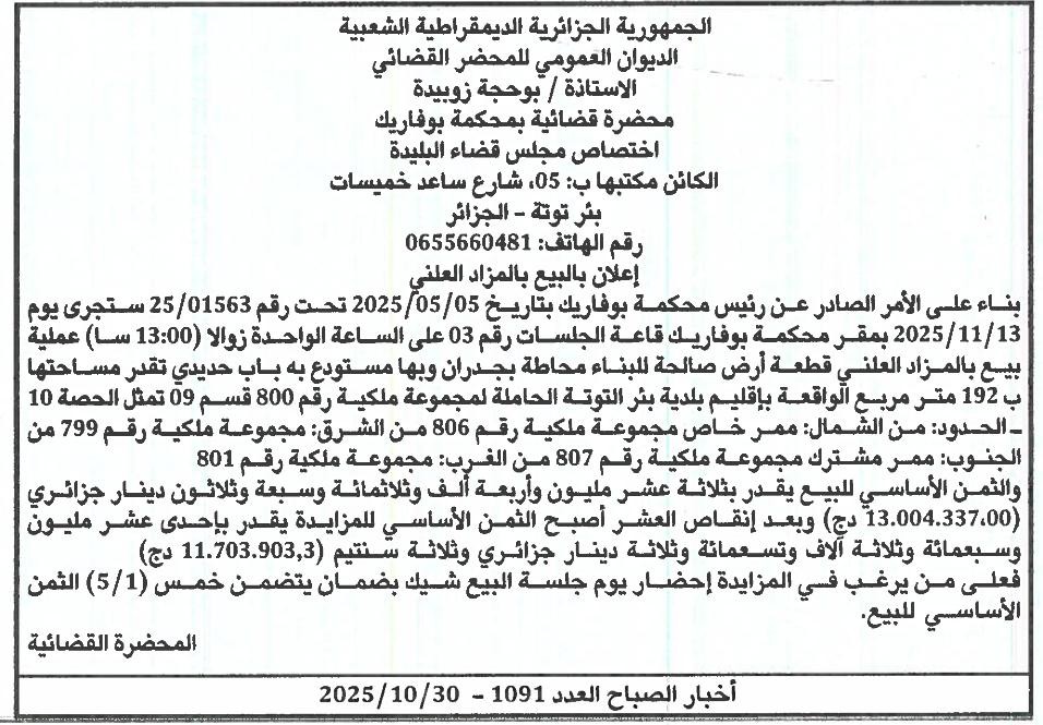 Il sera procédé à la vente au plus offrant et dernier enchérisseur le :