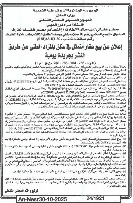 Il sera procédé à la vente au plus offrant et dernier enchérisseur le :