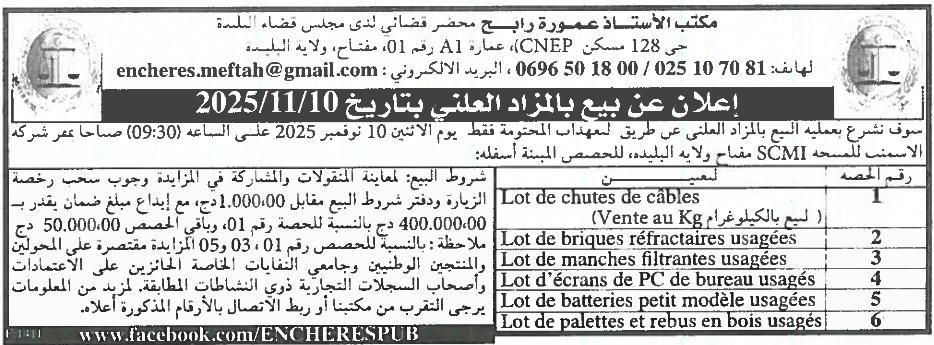 Il sera procédé à la vente au plus offrant et dernier enchérisseur le :