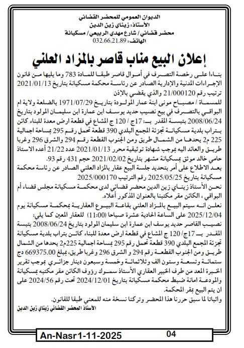 Il sera procédé à la vente au plus offrant et dernier enchérisseur le :