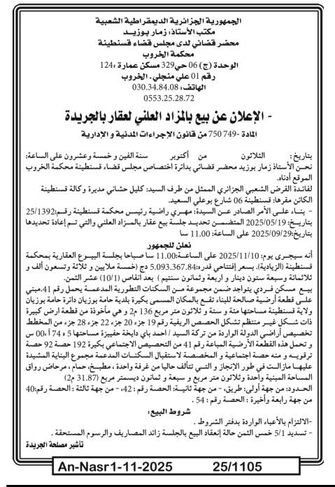 Il sera procédé à la vente au plus offrant et dernier enchérisseur le :