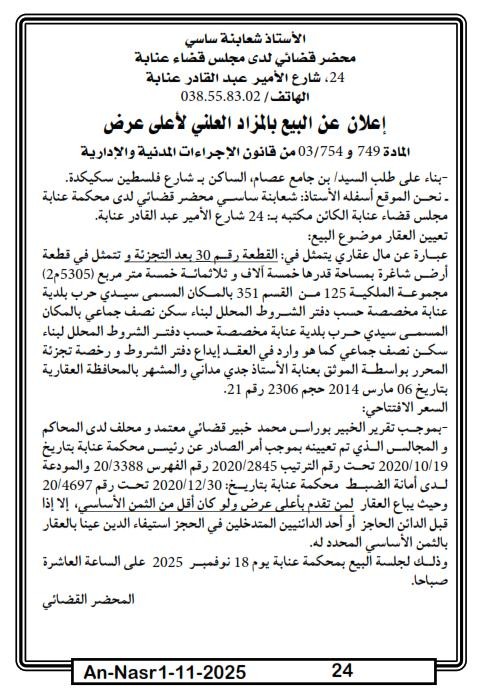 Il sera procédé à la vente au plus offrant et dernier enchérisseur le :