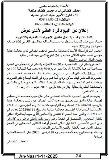 Il sera procédé à la vente au plus offrant et dernier enchérisseur le :