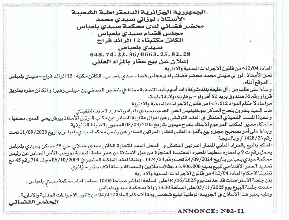Il sera procédé à la vente au plus offrant et dernier enchérisseur le : 05/11/2025';