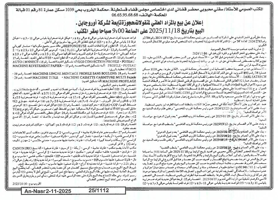Il sera procédé à la vente au plus offrant et dernier enchérisseur le :