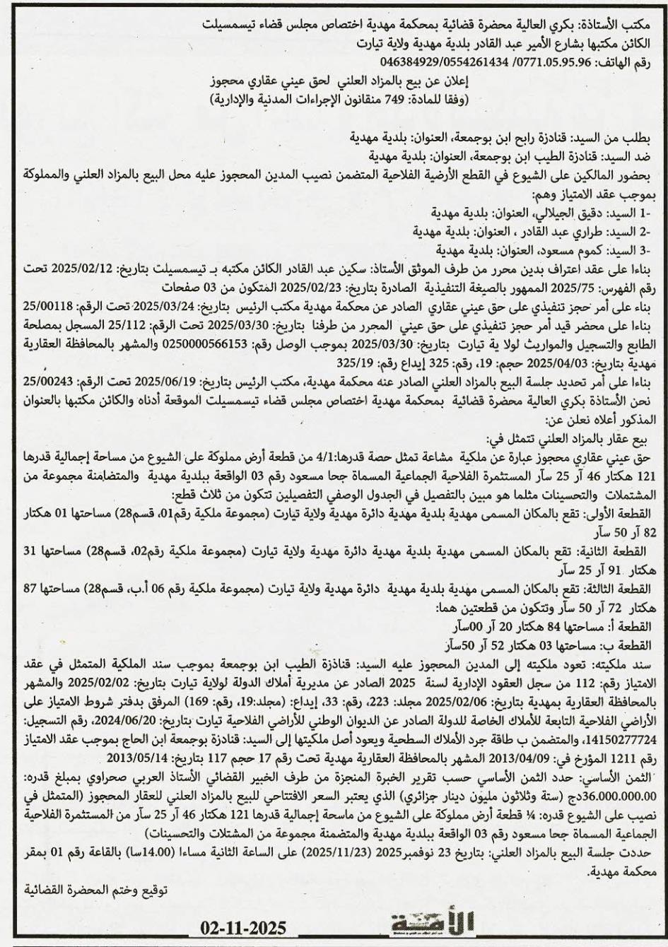 Il sera procédé à la vente au plus offrant et dernier enchérisseur le :