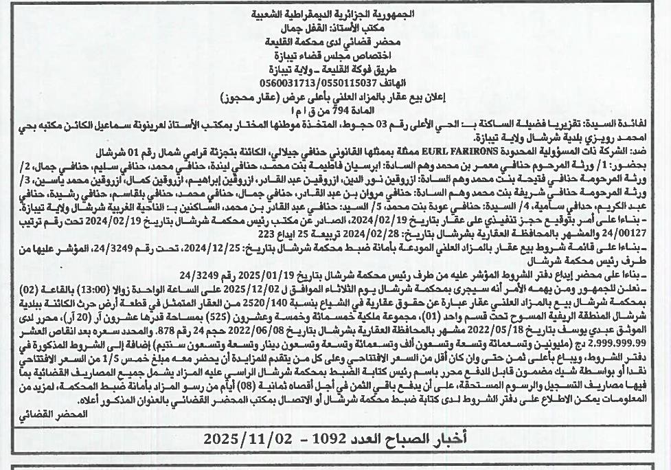 Il sera procédé à la vente au plus offrant et dernier enchérisseur le :