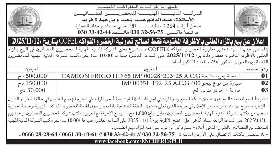 Il sera procédé à la vente au plus offrant et dernier enchérisseur le :