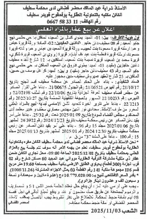 Il sera procédé à la vente au plus offrant et dernier enchérisseur le : 02/12/2025';