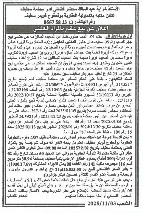 Il sera procédé à la vente au plus offrant et dernier enchérisseur le :