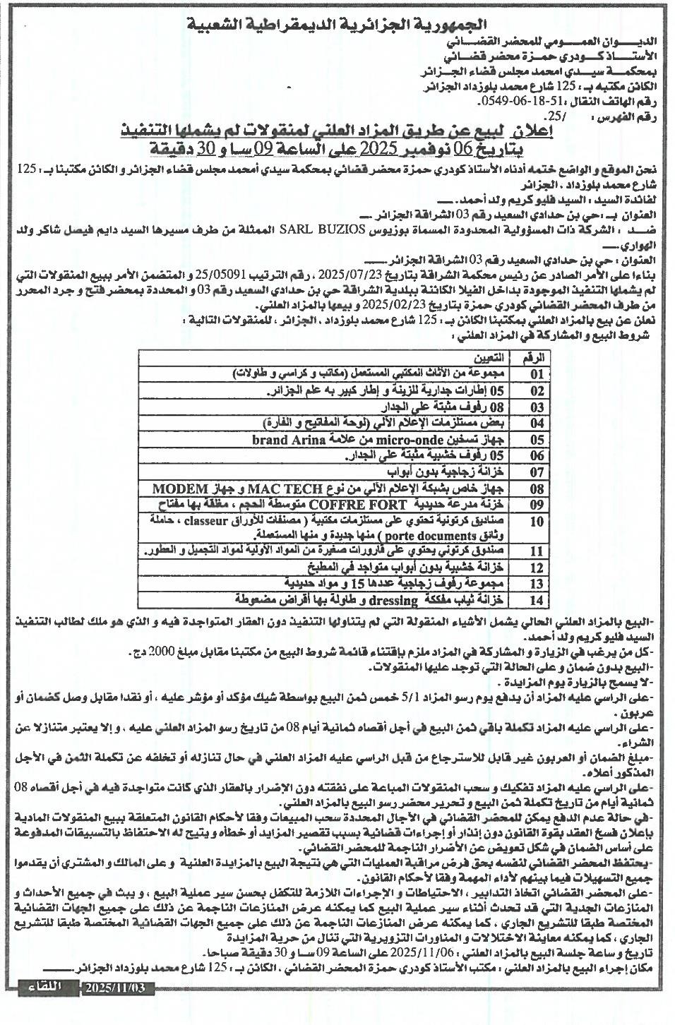 Il sera procédé à la vente au plus offrant et dernier enchérisseur le :