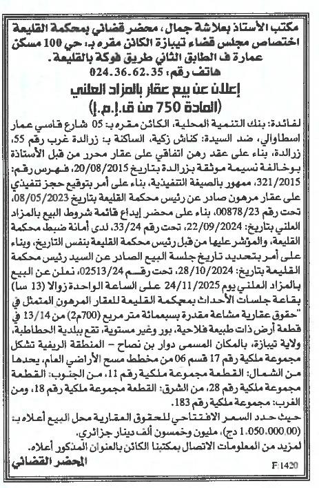 Il sera procédé à la vente au plus offrant et dernier enchérisseur le :