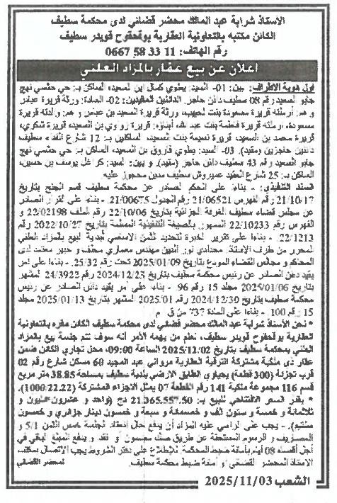 Il sera procédé à la vente au plus offrant et dernier enchérisseur le :