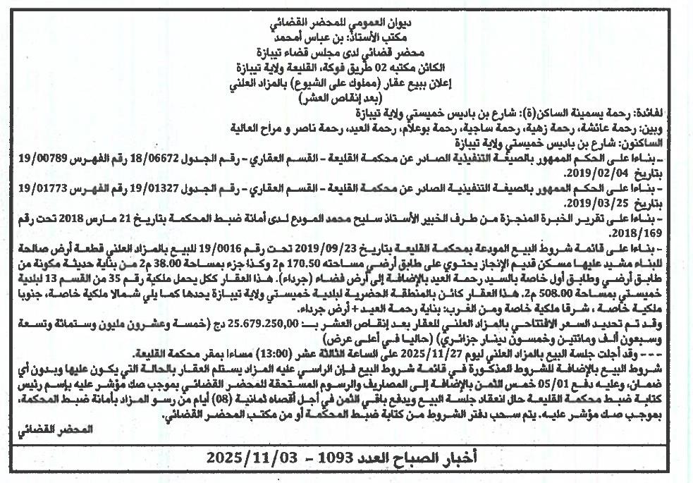 | Paru dans le journal : اخبار الصباح | |