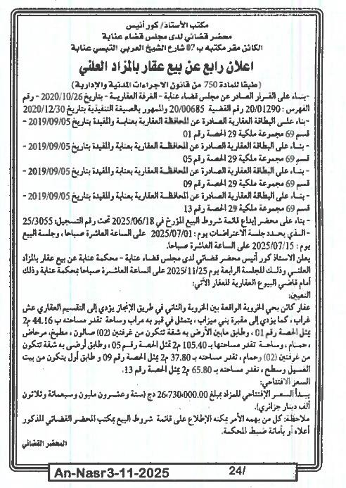 Il sera procédé à la vente au plus offrant et dernier enchérisseur le :