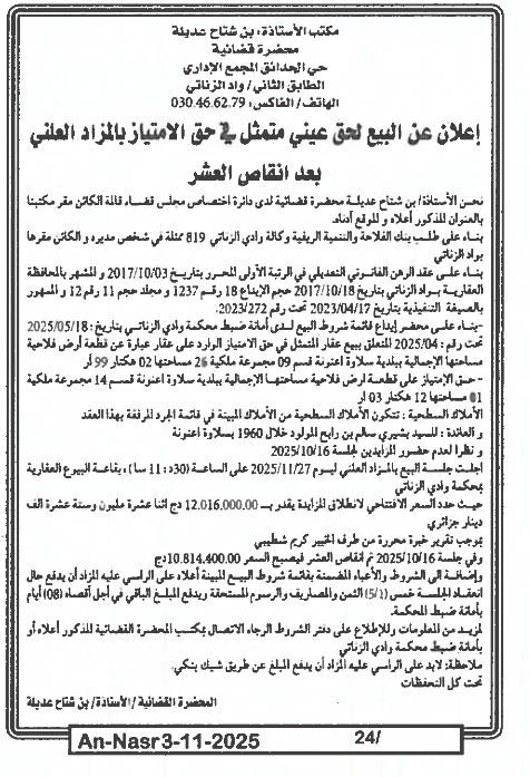 Il sera procédé à la vente au plus offrant et dernier enchérisseur le :