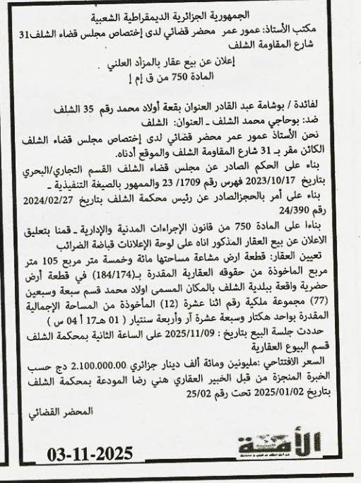 Il sera procédé à la vente au plus offrant et dernier enchérisseur le :