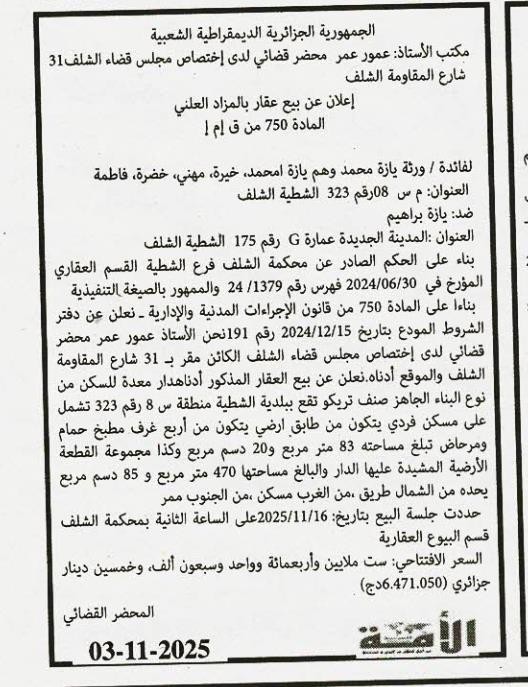 Il sera procédé à la vente au plus offrant et dernier enchérisseur le :