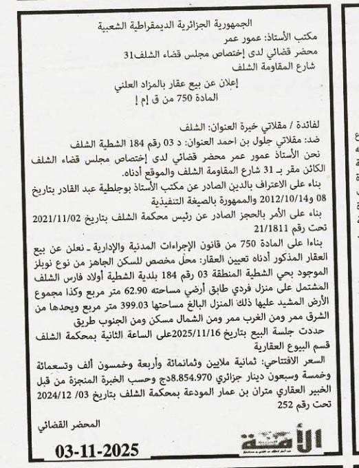 Il sera procédé à la vente au plus offrant et dernier enchérisseur le :