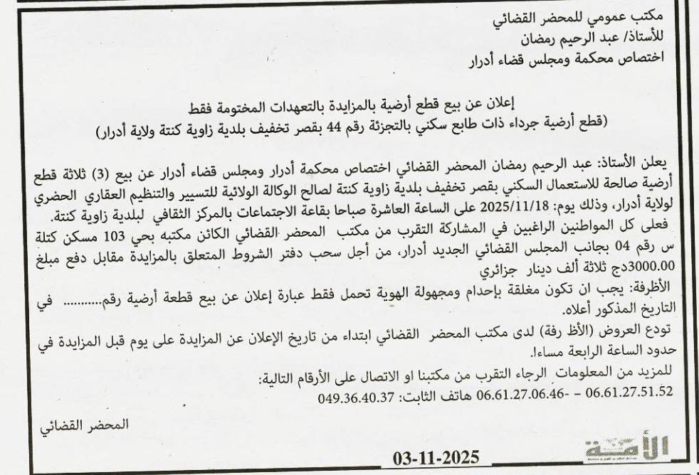 Il sera procédé à la vente au plus offrant et dernier enchérisseur le :
