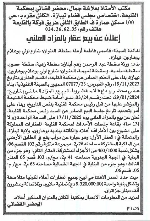 Il sera procédé à la vente au plus offrant et dernier enchérisseur le :