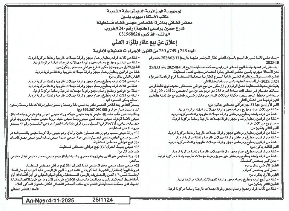 Il sera procédé à la vente au plus offrant et dernier enchérisseur le :