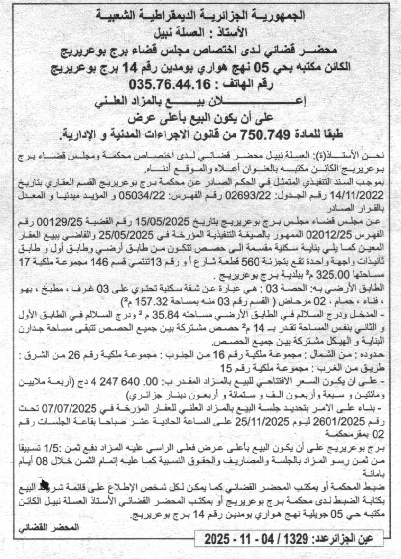 Il sera procédé à la vente au plus offrant et dernier enchérisseur le : 11/11/2025';