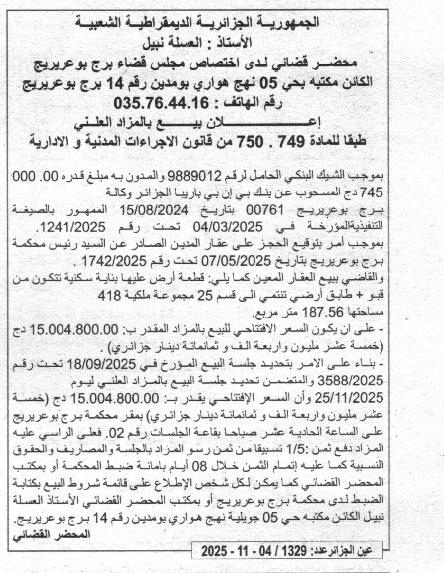 Il sera procédé à la vente au plus offrant et dernier enchérisseur le :