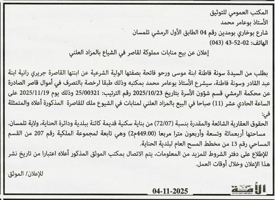 Il sera procédé à la vente au plus offrant et dernier enchérisseur le :