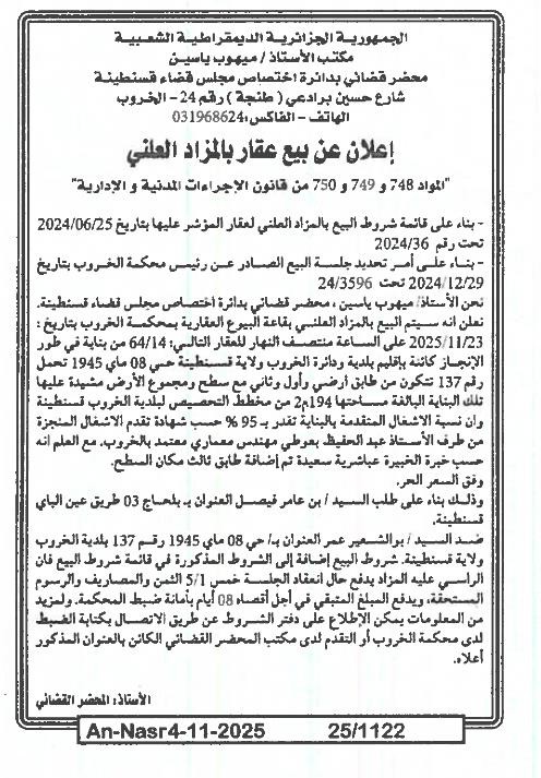 Il sera procédé à la vente au plus offrant et dernier enchérisseur le :