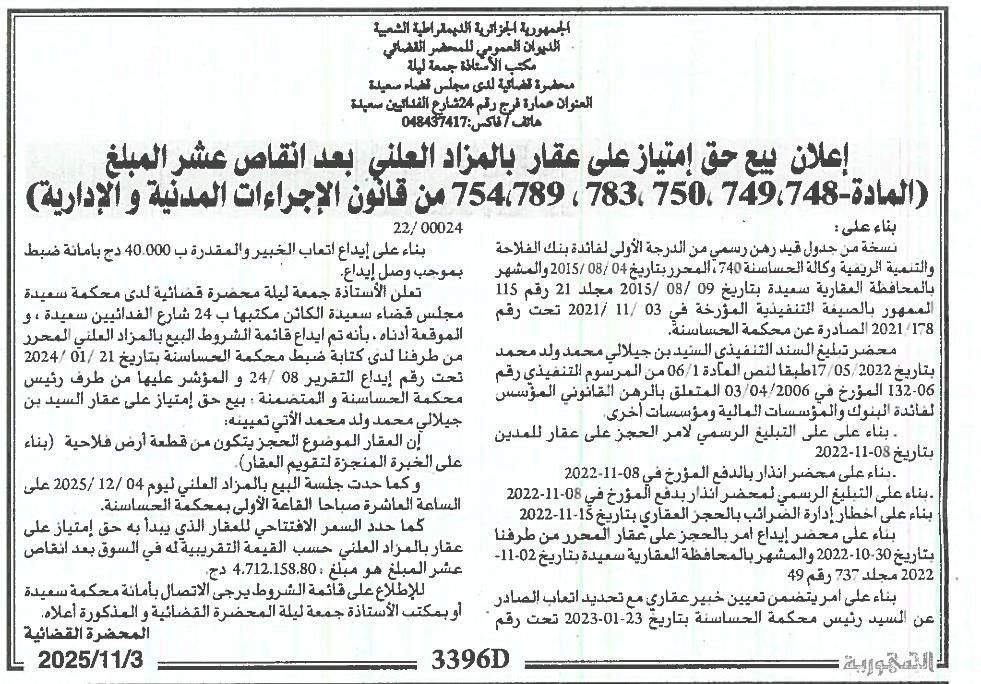 Il sera procédé à la vente au plus offrant et dernier enchérisseur le :