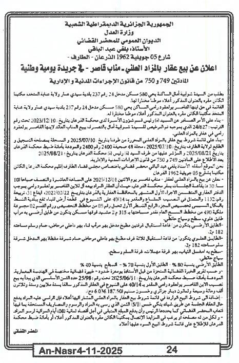 Il sera procédé à la vente au plus offrant et dernier enchérisseur le :