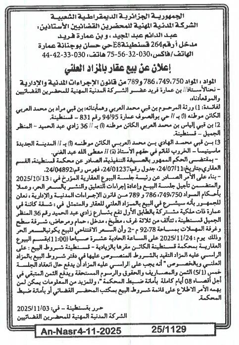 Il sera procédé à la vente au plus offrant et dernier enchérisseur le : 11/11/2025';