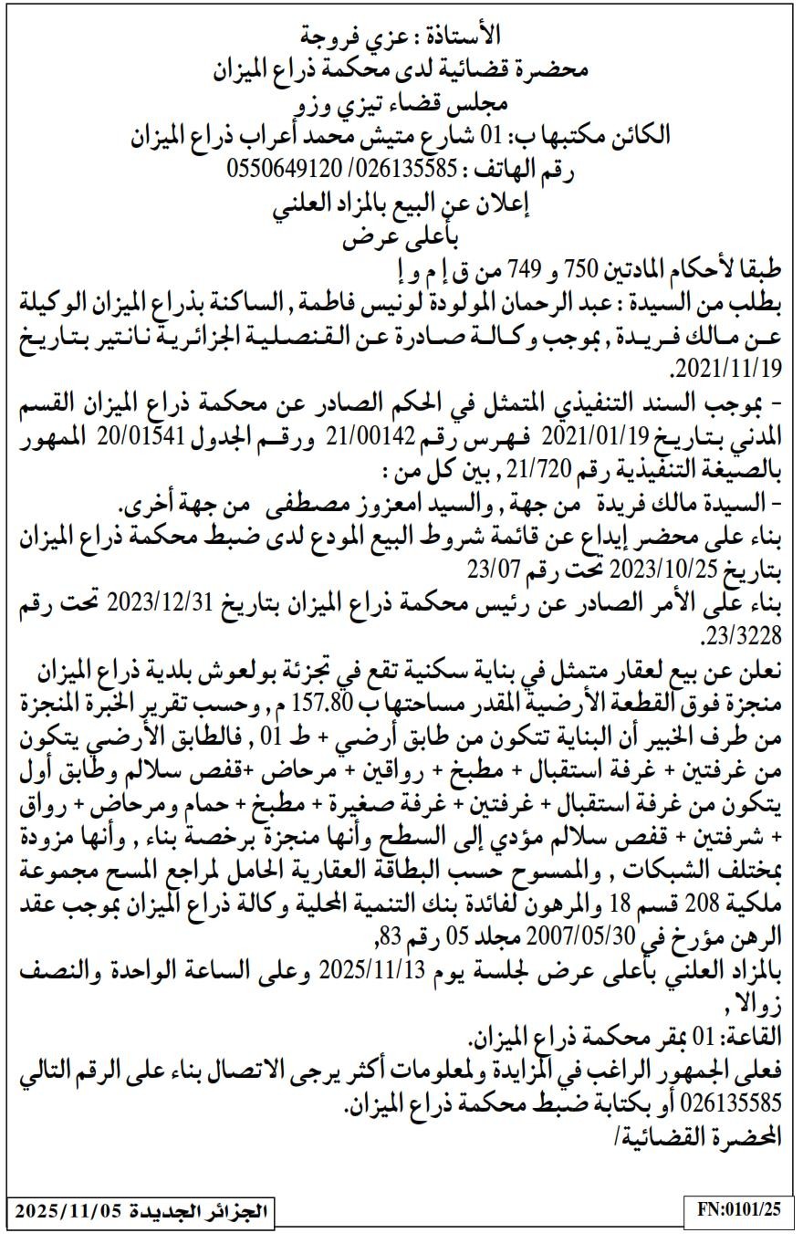 | Paru dans le journal : الجزائر الجديدة | |