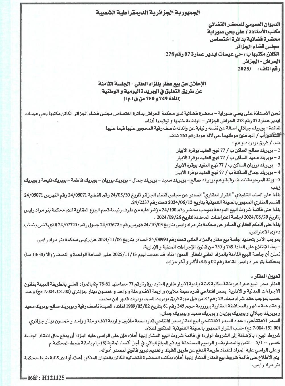 Il sera procédé à la vente au plus offrant et dernier enchérisseur le :