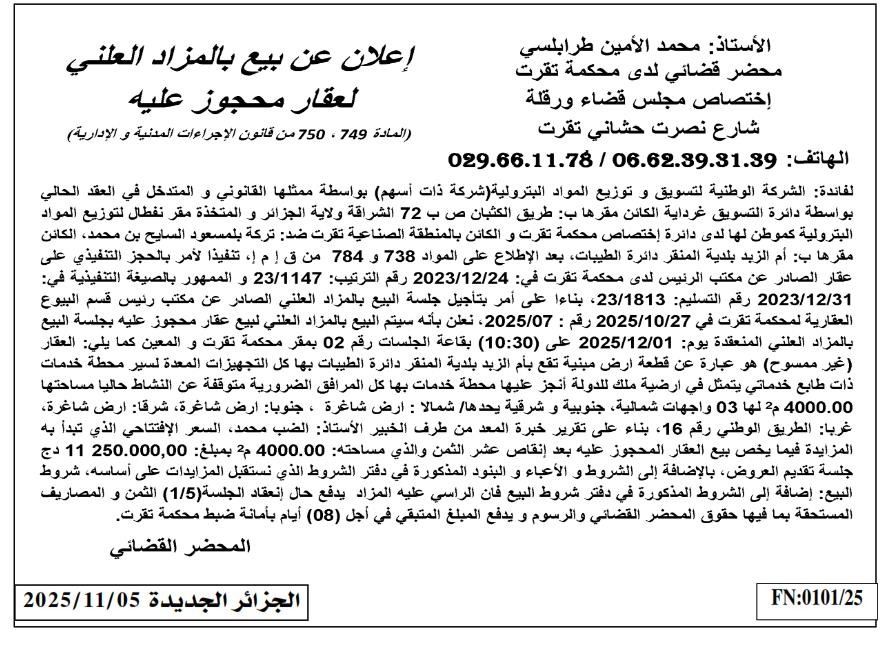 Il sera procédé à la vente au plus offrant et dernier enchérisseur le :