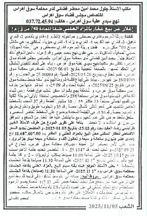 Il sera procédé à la vente au plus offrant et dernier enchérisseur le :