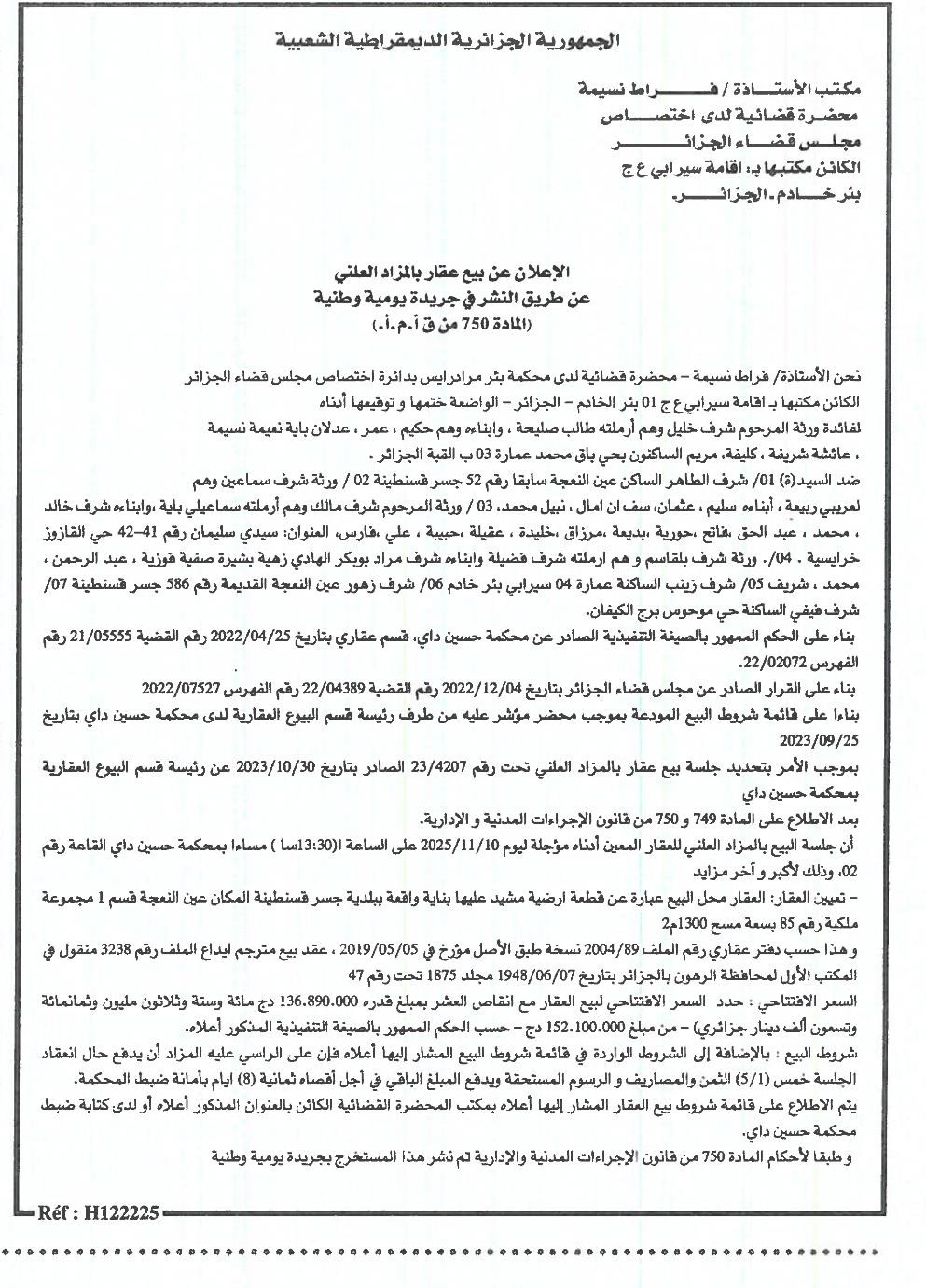 Il sera procédé à la vente au plus offrant et dernier enchérisseur le :
