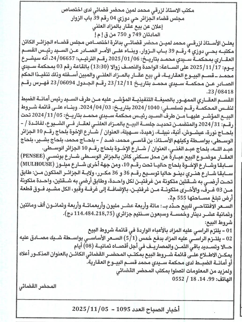 Il sera procédé à la vente au plus offrant et dernier enchérisseur le :